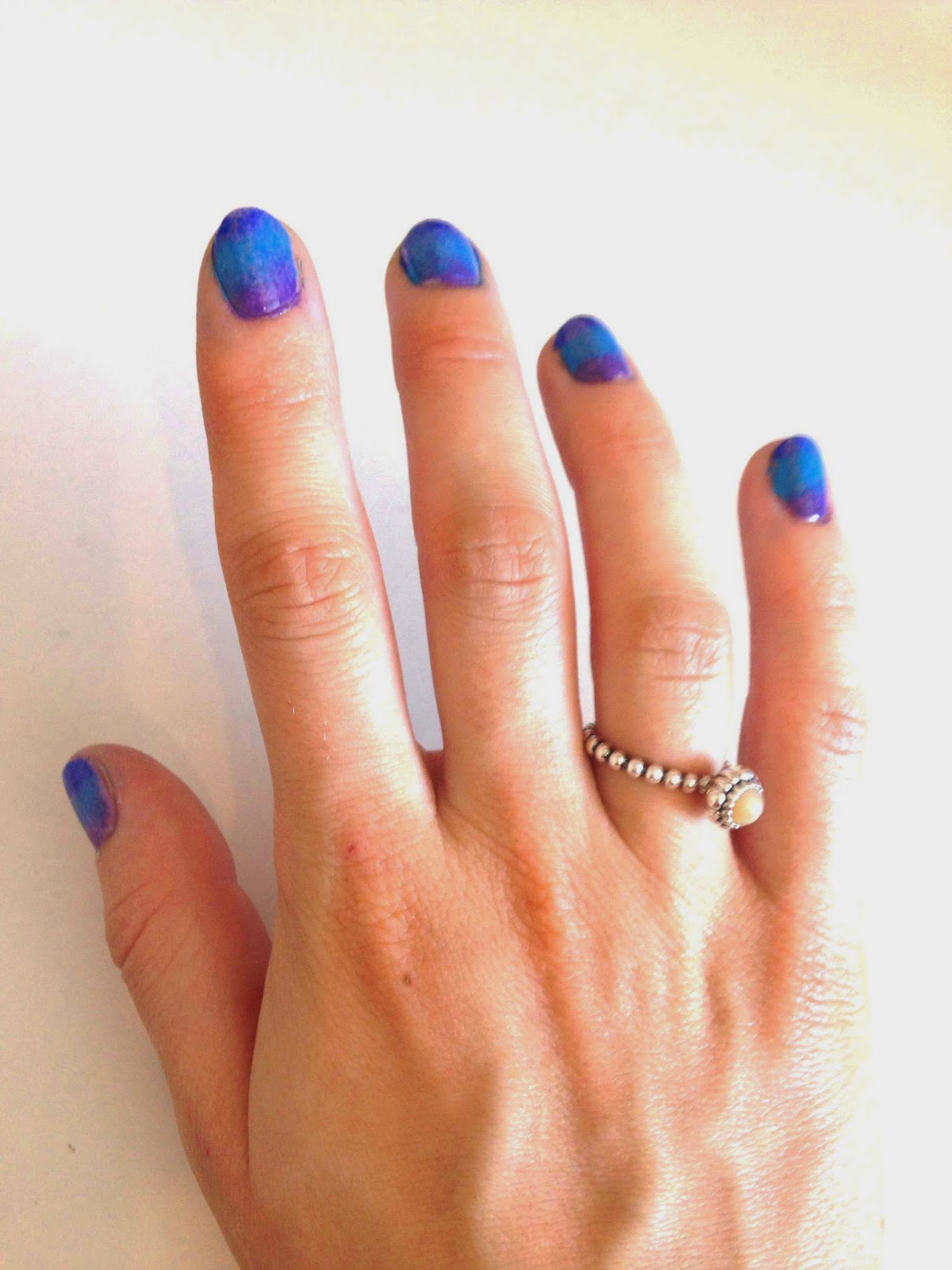 Having a week off from interning has freed me up a lot of time, so I thought I would have a little me time and experiment with my nails. I have always wanted to give ombre nails a go so looked up a couple of tutorials and found such an easy way to do it, and using these colours gives it quite a cool galaxy effect. I thought I would share it with all of you, because I'm nice like that.